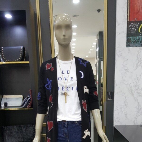 모 혼방의 간절기 롱 가디건입니다살짝 비치는 정도이며 진한 블랙에 다양한 컬러의 패턴들이 생동감있게보여지는 스타일입니다총장 99.5cm