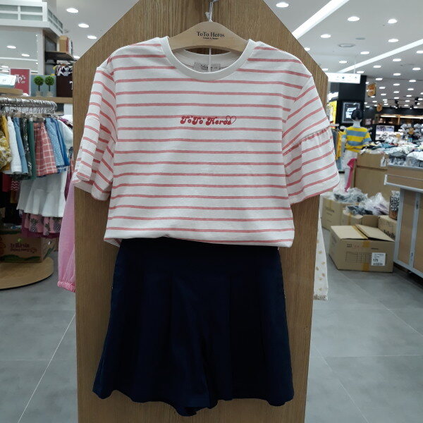 스트라이프패턴이 시원해보이는티셔츠입니다소매가 예뻐요**코디팬츠는 3.5부 주름팬즈입니다