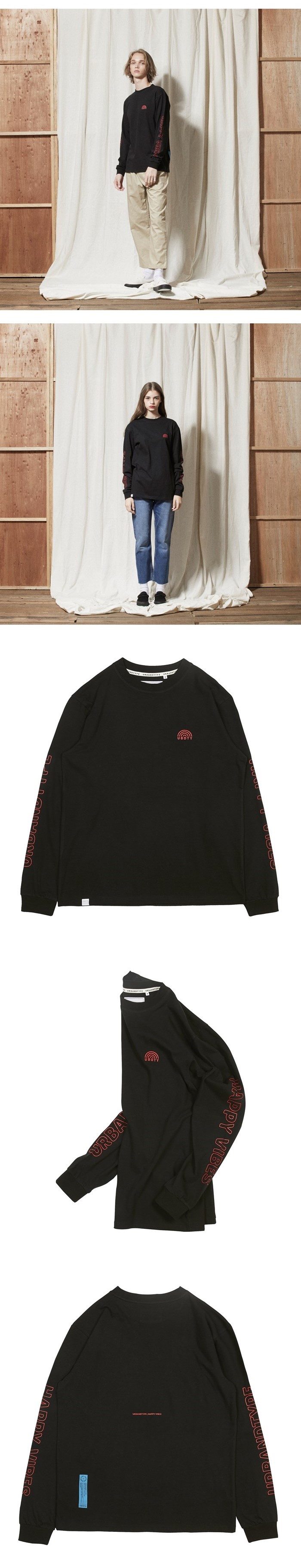 | 사이즈 실측(cm) S : 총장 68cm, 가슴 50cm, 어깨 42cm, 팔 63cm M : 총장 71cm, 가슴 52cm, 어깨 46cm, 팔 65cm L : 총장 75cm, 가슴 54cm, 어깨 50cm, 팔 67cm MAN 188cm L size, WOMAN 175cm M size 색상 : BLACK 소재 : Cotton 100% 비비드한 컬러웨이가 인상적인 롱슬리브 티셔츠입니다. 심플한 그래픽의 밸런스가 매력적이고 등판 라벨포인트가 있습니다. 덴타 덤블 가공 후 침수 가공작업을 더하여 축률을 최소화 하였습니다. |