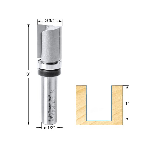 Amana Tool 45463 Flush Trim/Pattern Plunge 3/4-Inch Diameter by 1-Inch Cutting Height by 1/2-Inch Shank Carbide Tipped Router Bit