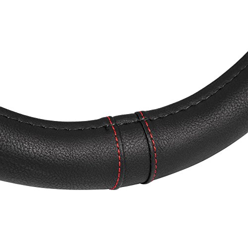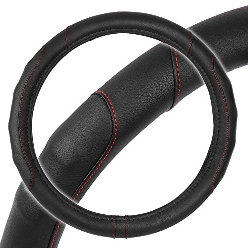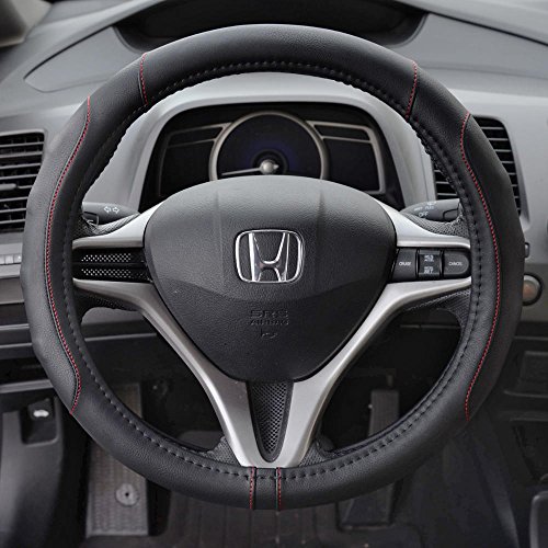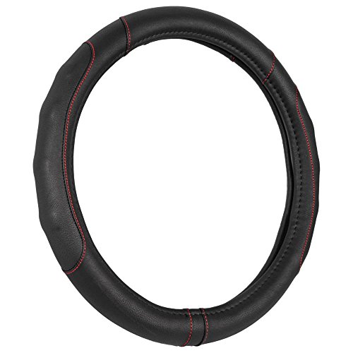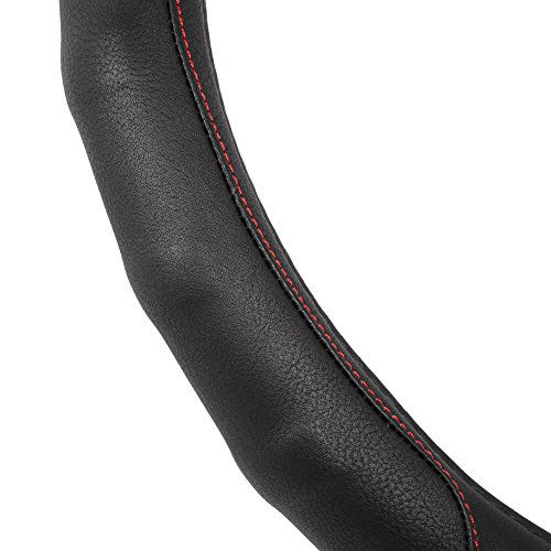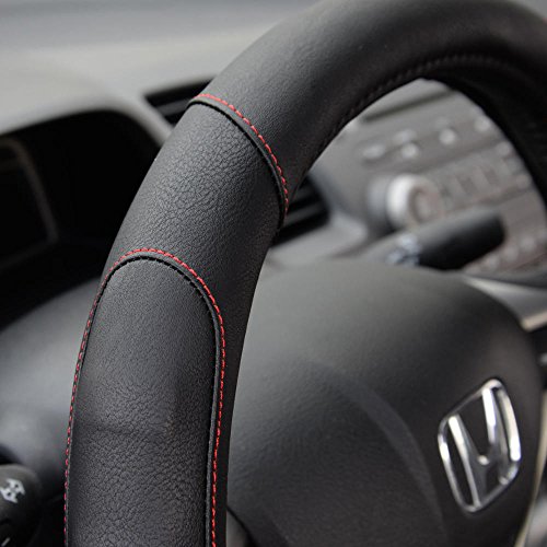 Grip drive Pro by Motor Trend: Synth leather steering wheel cover is the perfect addition to any vehicle. It's soft leather and comfort grip sides make for a clean, sleek look. Featuring sporty accent stitching. Installation: 1) begin by measuring your steering wheel to ensure a correct fit. 2) take the steering wheel cover and hold it up to your steering wheel, noticing where the top, bottom, and sides of the cover are located. With some steering wheel covers, there will be stitching located at the bottom. 3) align the bottom of the cover with the bottom of your steering wheel and press it over, wrapping it around the bottom portion of the wheel. 4) moving up, around the steering wheel, continue pulling the cover over the wheel. 5) once the cover is on, adjust for proper alignment. 6) enjoy your new steering wheel cover note: you can use a blow dryer on high heat to soften the leather. This will make it easier to stretch it around your steering wheel.Feature
