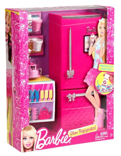 -. Feature : Help Barbie doll prepare some delicious food / Fabulous fridge opens to reveal shelves of goodies / Innovative feature keeps furniture and accessories in place / Includes refrigerator and tons of yummy accessories / Collect all 3 Barbie Glam Furniture sets