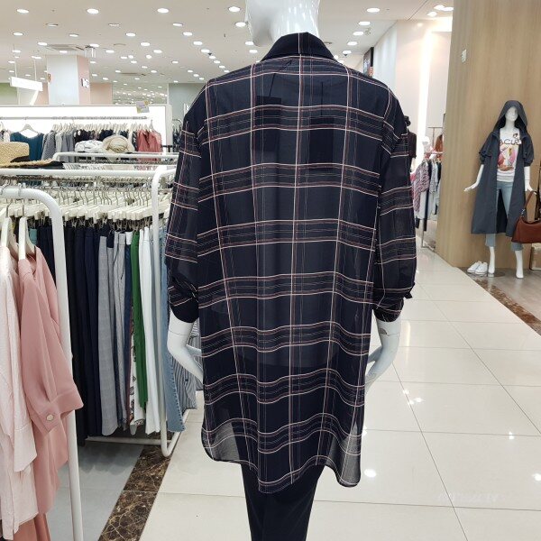 아우터형 시스루 롱체크블라우스