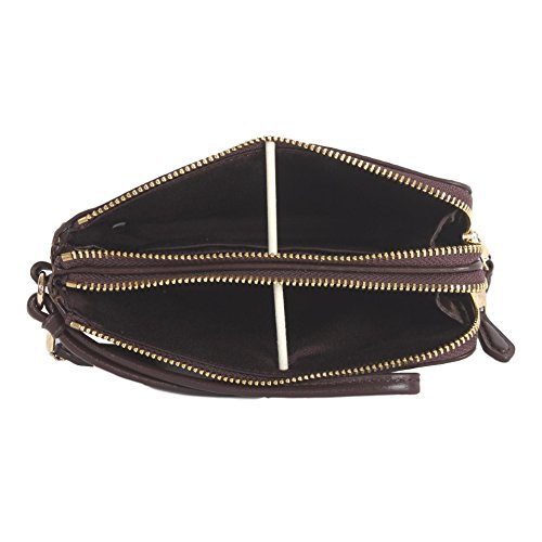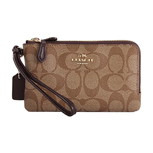-. Title : Signature PVC Double Corner Zip Wristlet Wallet F87591 (Khaki Oxblood Glitter)