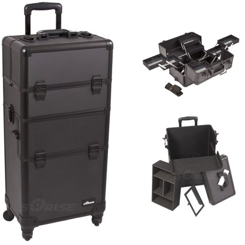 - 2-in-1 professional trolley makeup case 360 degree rolling wheel system