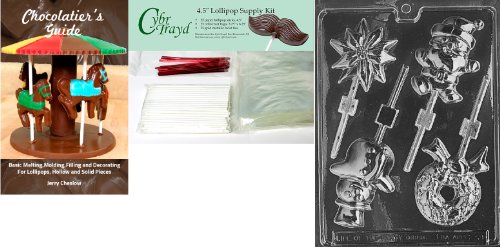 Cybrtrayd Assorted Lollies Chocolate Mold with Chocolatier's Bundle of 25 Lollipop Sticks, 25 Cello Bags, 25 Red Twist Ties and Chocolatier's Guide