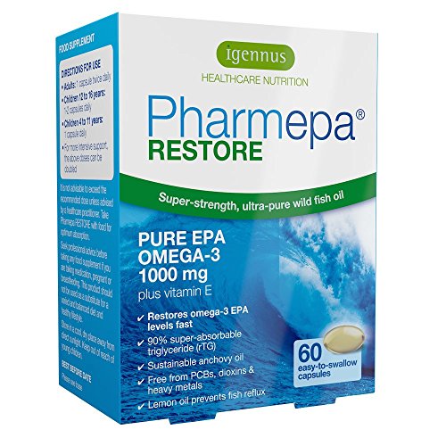 SUPER CONCENTRATED 1000 mg OMEGA-3 FOR MAXIMUM RESULTS: our highly concentrated fish oil delivers higher amounts of omega-3 into cells where they can get to work fast. By raising the percentage of EPA and DHA in red blood cells to approximately 10%, we improve long-term health, support heart, brain and mood, and reduce disease risk. Pharmepa RESTORE contains 90% omega-3 concentrate in triglyceride (rTG) form, offering 1000 mg of active omega-3 EPA in 2 small capsules recommended as a split dose