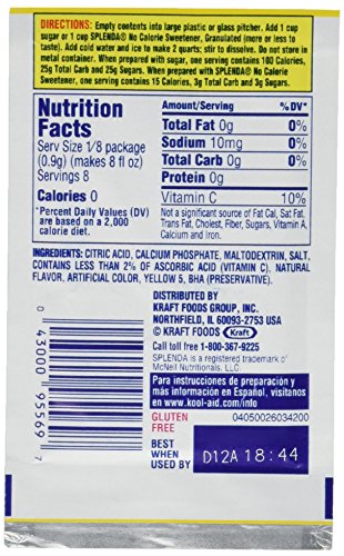 • Fifty packets of Lemonade flavor, each pack 0.23 Ounces