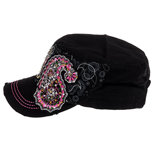 -. Binding : Apparel -. Brand : Crystal Case -. ClothingSize : One Size -. Department : womens -. Feature : Tastefully adorned with crystal rhinestones & embroidering / Breathable 100% cotton / Adjustable buckle closure / Be a trendsetter! / One size fits most -. Label : Crystal Case -. Manufacturer : Crystal Case -. PackageQuantity : 1 -. ProductGroup : Apparel -. ProductTypeName : HAT -. Publisher : Crystal Case -. Size : One Size -. Studio : Crystal Case -. Title : Crystal Case Womens Cotton Rhinestone Paisley Cadet Cap Hat