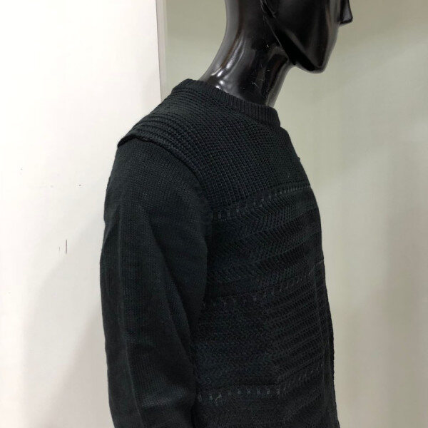 남, 여 공용으로 착용 가능한 변형조직 스웨터 입니다. 여러 조직을 믹스하여 심플하면서도 유니크한 코디가 용이한 스웨터 입니다. 남자분의 경우 한 치수씩 낮게 구매하시는 것을 권장해드립니다.