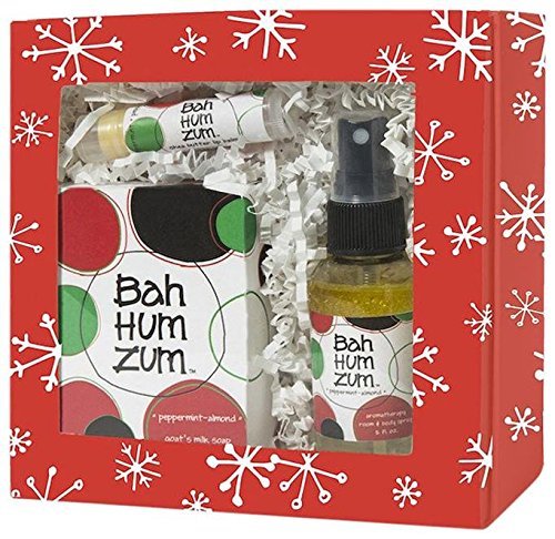 -. Feature : Scent is peppermint almond / Includes bar soap, mini room and body mist and kiss stick / All natural ingredients