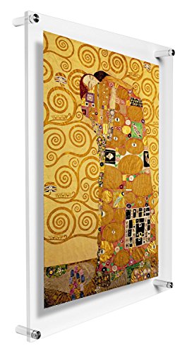 -. Feature : Clear acrylic frame 8x 11-1/2 inch / Horizontal or vertical display / Silver satin anodized aluminum standoff screws grip frame on the sides / Material : Acrylic