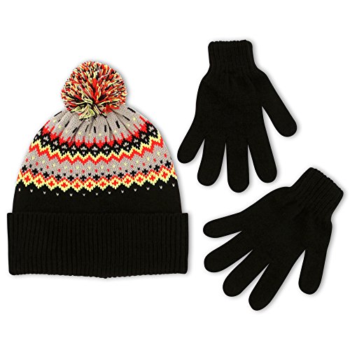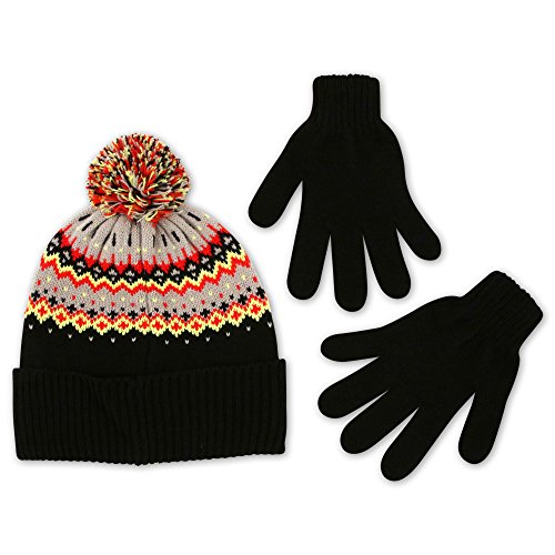 ABG Accessories Big Boys' Knit Fair Isle Cuff Beanie with Glove Set