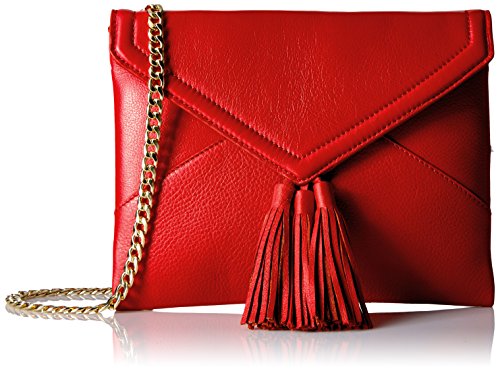 Leather envelope-style handbag with removable crossbody strap and suede fringe tasselsFeature