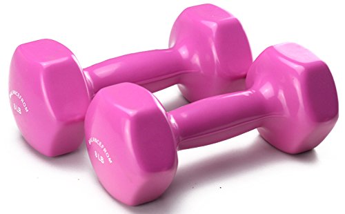 - Vinyl dumbbells come at a pair;