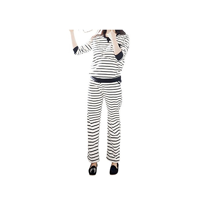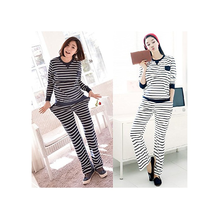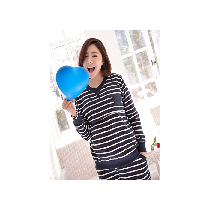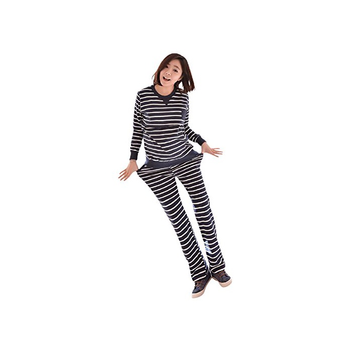 ?(Miwoluna) 마타니티 수유복 파자마 집착 네이비 보더 착용감 좋아 움직임이 악? XL