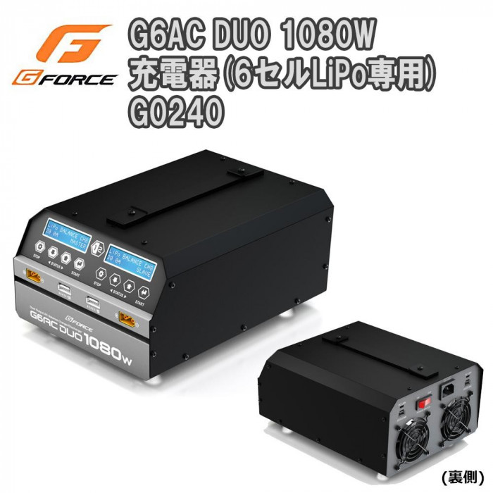 | 仕様 | 入力電圧:AC100-240V 充電出力:1080W(540W×2系統) 放電能力:100W(50W×2系統) 充電電流:1.0-20.0A×2 バランス調整電流:1.2A 対応バッテリー:LiPo/LiHV6セル専用 動作モード:バランス充電モード、ストレージモード、チャージモード セーフティ機能:ショート・逆接・オーバーヒート保護回路搭載 |