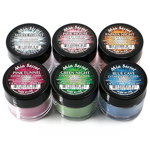 6pc Mia Secret Nail Art Powder Glow in The Dark set of 6 colors #PL400 ...