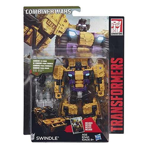 -. Feature : 2-in-1 figure changes from robot to off-road vehicle and back / Becomes an arm or a leg for Combiner figures / Collect all 6 Combaticons figures and combine to form a Bruticus figure / Works with any Voyager Scale Combiner Wars figure (sold separately) / Includes Deluxe Scale Swindle figure, blaster accessory, comic book, and instructions.