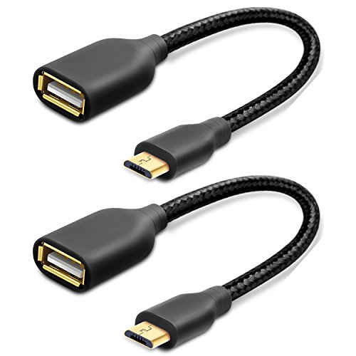 BRAIDED OTG CABLE WITH GOLD-PLATING CONNECTOR: Constructed with durable nylon braided shielding & corrosion-resistant gold-plated connectors for optimal signal clarity and error-free data transmission, this usb otg cable is strong and sturdy enough to withstand long-term use with tested strictly 5000+ times bending. And only 6inch useful and short cable adds convenience when outside or travel.