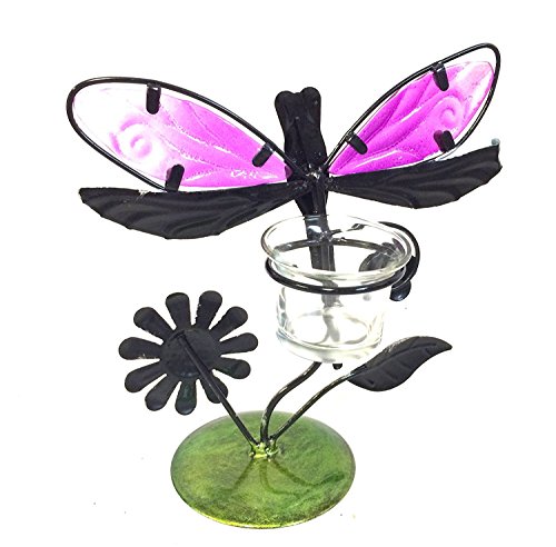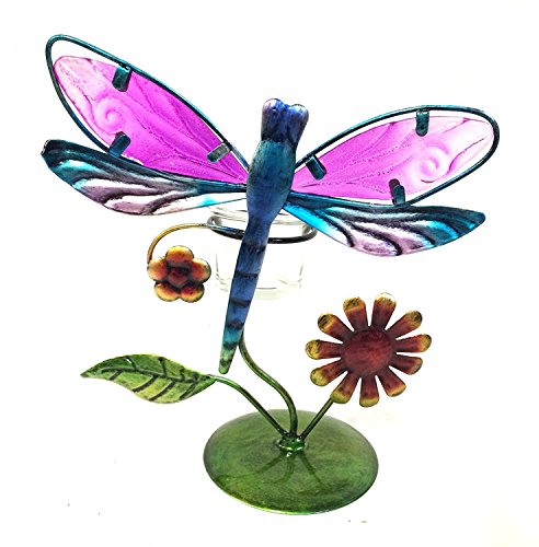 Bejeweled Display Beautiful Dragonfly w/ Stain Glass Candle Holder & Home Decor w/ Gift Box