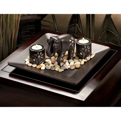 Gifts & Decor Tealight Candleholder Plate Light Set with Elephant Figure