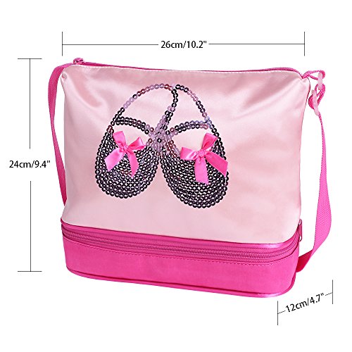 Product Description This dance bag is cute and lightweight,can store ballet shoes, leotard and tights,and other small things. Whether it is for ballet or gym class,cheerleading practice,basketball or any other sports,can help your girl store her daily essentials without weighing her down.