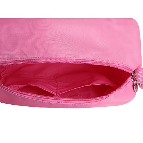 Features: 1. A large zippered main compartment a small zippered compartment at the bottom two interior pocket 2. Adjustable Carrying Strap 3. The material is waterproof,so if it is dirty,this dance bag can be wiped down easily, for no-fuss clean up. 4. it is not too big,your girl can carry it by herself 0