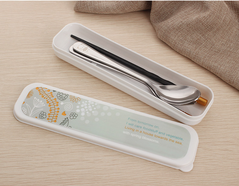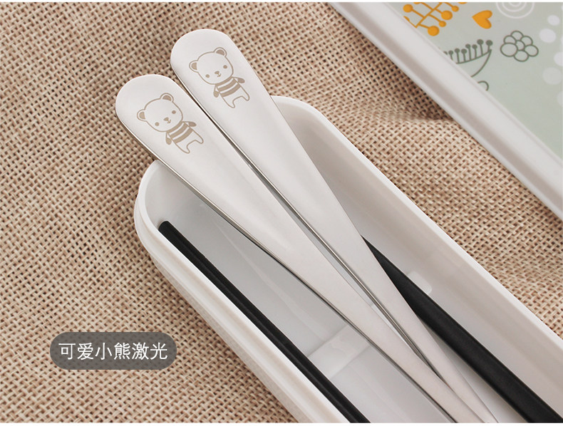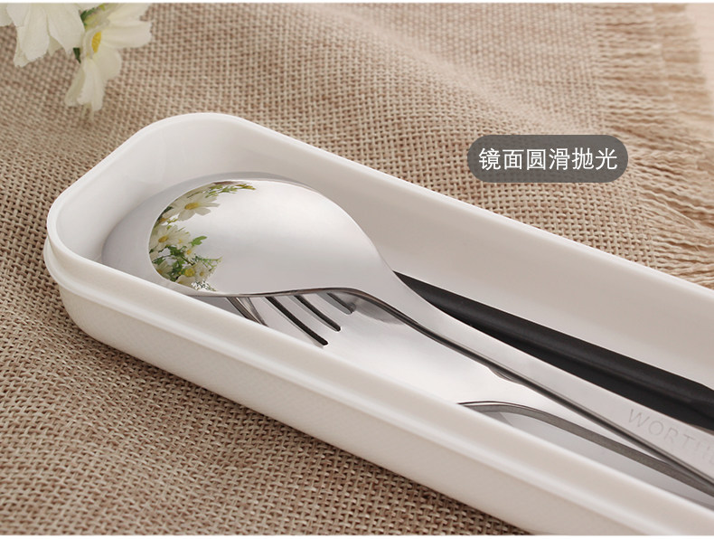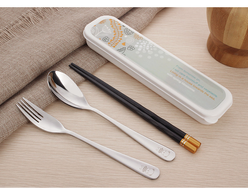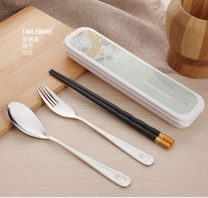 合金筷子勺子叉子套装便携式餐具三件套不锈钢便携餐具盒旅行学生