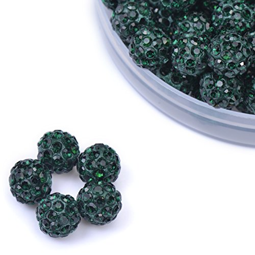 iCherry(TM) 10mm 100pcs/Lot Dark Green Clay Pave Disco Ball for Rhinestone Crystal Shamballa Beads Charms Jewelry Makings