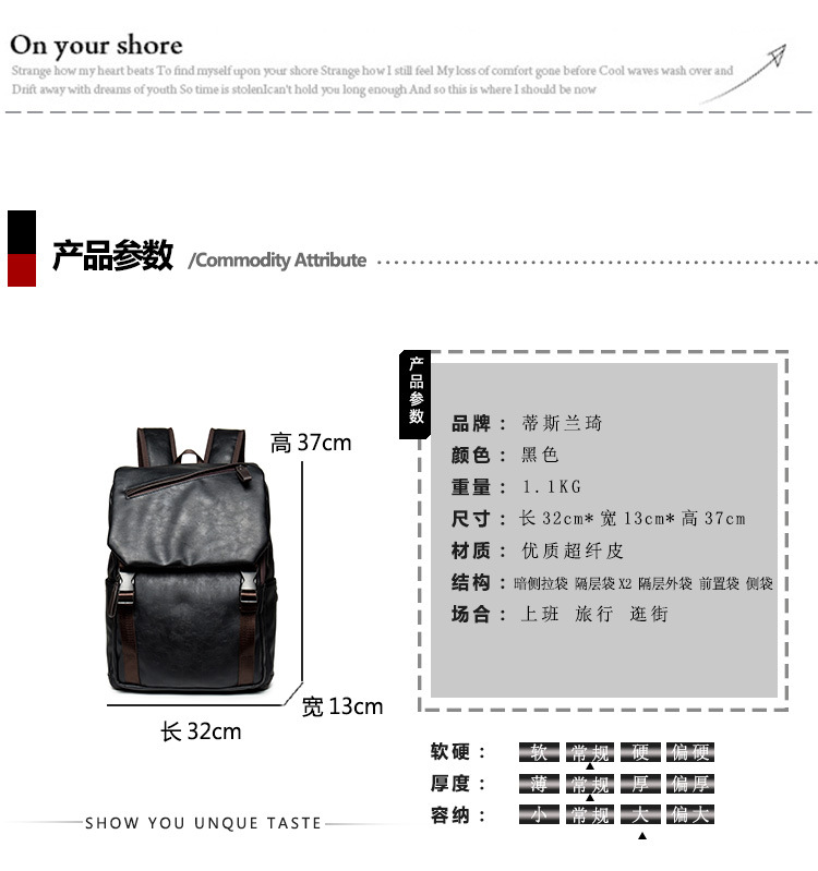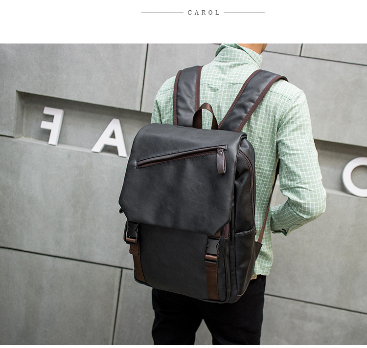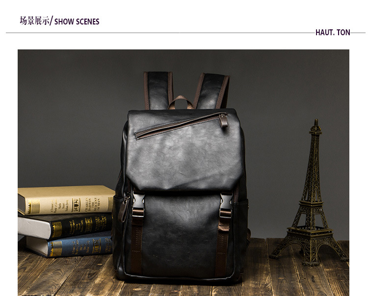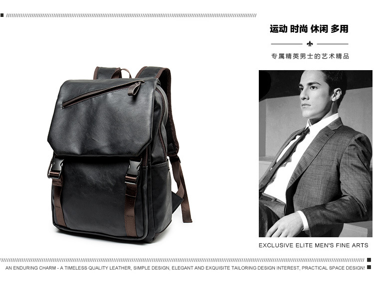 韩版男士双肩包潮男背包皮质休闲男包旅行电脑包日韩初中学生书包