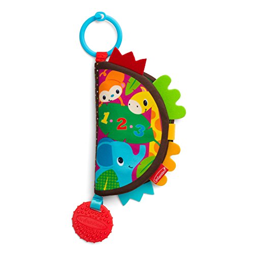 Infantino See Play Go Link & Crinkle Animal Counting Book. This sweet storybook is perfect for little ones who aren't quite ready for board books. Each soft page introduces early counting concepts with cute baby animals. Crinkle sounds and peek-a-boo flaps encourage sensory discovery and exploration. Attaches easily to car seats, strollers and diaper bags.