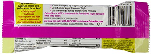-. Feature : Pack of 15 Nutrition Bars, each Bar weighs 40g (1.41oz). Total Net Weight 600g (21.16oz.). / High protein (12g) and fiber (5g). Gluten Free. Only 1g Sugar (from berries). Kosher. 150 calories and 2g Net Carb. / The only formula proven to help control blood sugar for 6 to 9 hours. / Helps control hunger and reduce calories consumed at next meal by 21%. Helps reduce episodes of hypoglycemia by up to 75%. Helps reduce AM hyperglycemia by 28%. Helps improve muscle recovery and sustain energy for exercise. / MD Invented. Endorsed by Professional athletes. Recommended by Doctors, Dietitians, and Nurses. Clinically Proven. Patented worldwide. / Pack of fifteen, 1.41-ounce, total 21.15-ounce / High protein (15g) and fiber (5g) nutritional snack bar that is clinically proven to control blood sugar for up to 9 hours / Diabetic friendly snack bar that helps avoids blood sugar highs and lows / Low carb, low glycemic and low fat nutrition snack bar clinically proven to control hunger / Gluten free and heart healthy snack bar that travels well