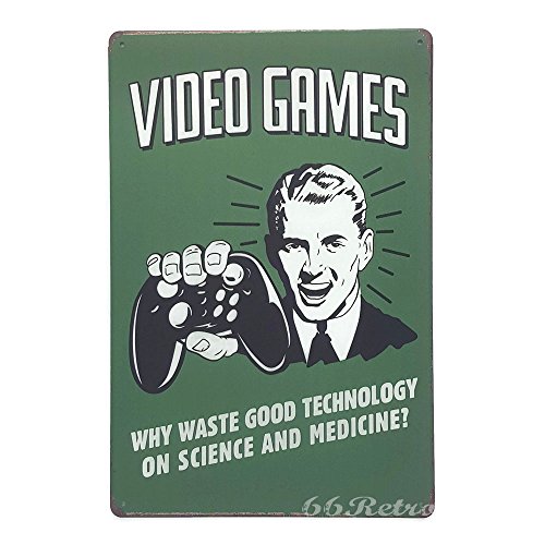 Video Games, Why Waste good technology on science and medicine?, Vintage Tin Sign, Wall plaques, Wall Decor By 66retro