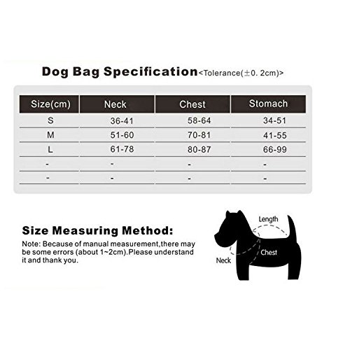 -. Feature : 100% Brand new and high quality polyester material,durable and waterproof / Fashion, Lightweight and Washable,mesh in the middle is breathable and cooling, bringing your lovely dog comfortable feelings / Neck,Chest and back circumference are adjustable;The bag inner have sandwich air net, very comfortable / Two convenient pockets provide More rooms for your own disposable dog food, water bottle, house keys, and cell phone / Multi-functional dog backpack, ideal for dog hiking, camping, long trail walks, backpacking trips, traveling or everyday use