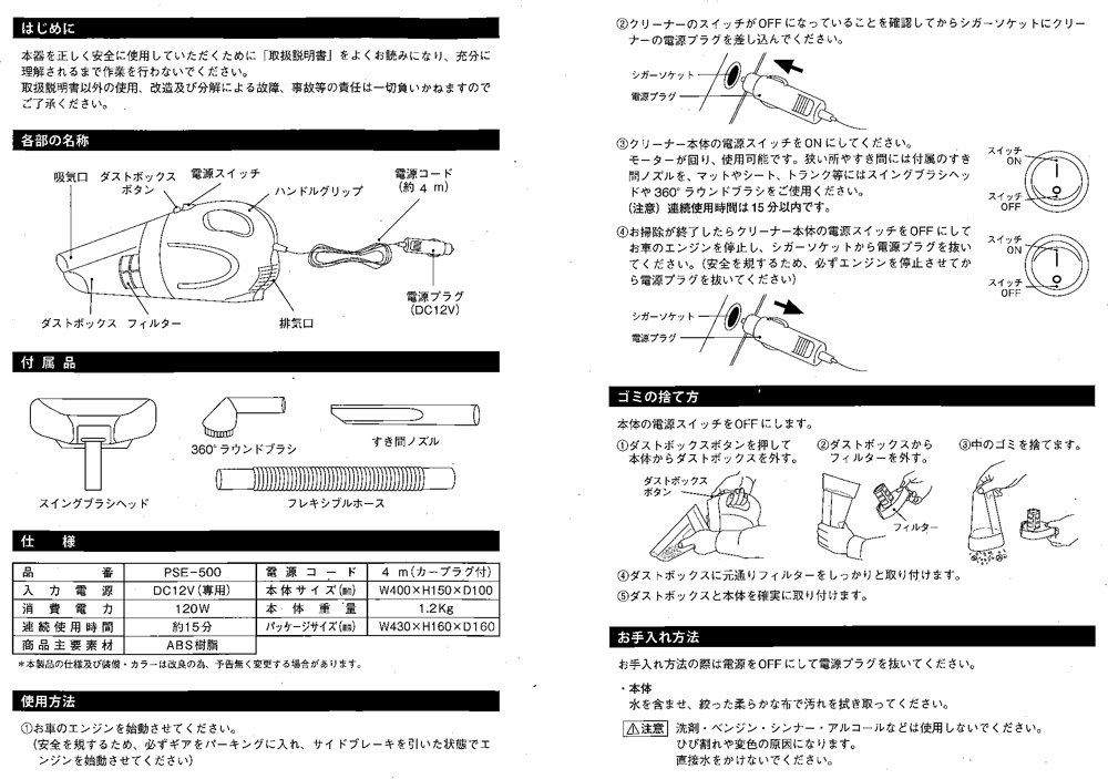 Star Arrow (STAR ??ARROW) cyclone car cleaner Sweeper DC12V PSE-500