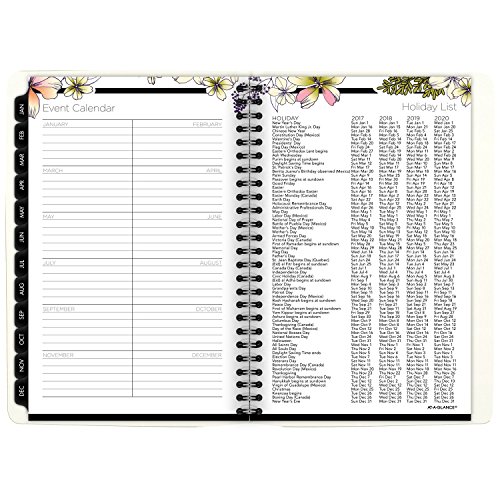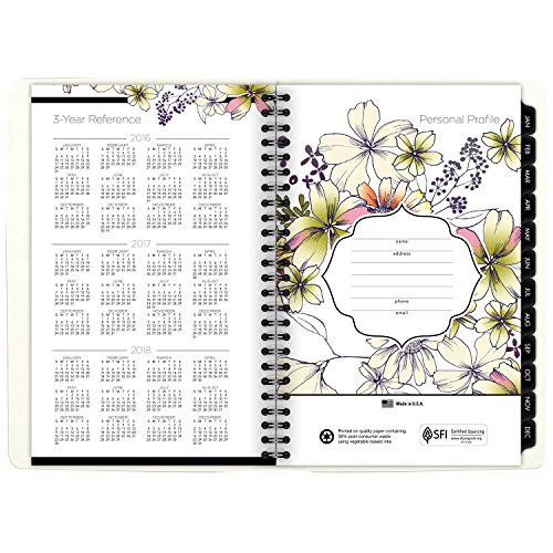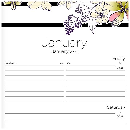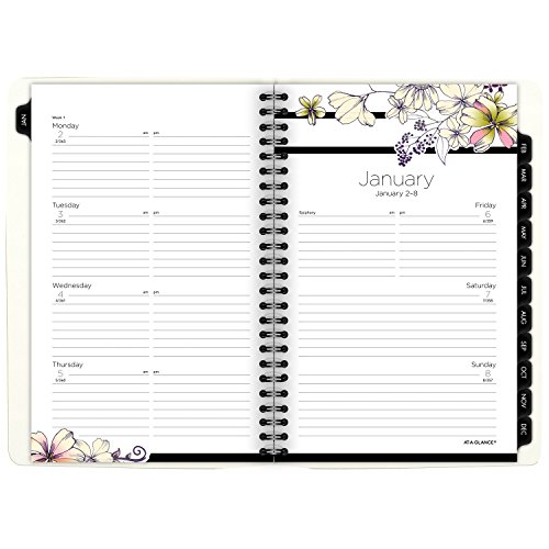 -. Binding : Office Product -. Brand : At-A-Glance -. EAN : 0038576368477 -. Feature : Striped cover of the weekly/monthly Monique planner has a pretty front with flowers in the top left and bottom right corners. Planner includes 13 months of planning pages from January - January with Julian dates included. / One week per two page spread features an equal sized planning space for each day of the week, Monday - Sunday. Weekdays are split into a.m. and p.m. sections for more detailed workday plans. / One month per two page spread features ruled daily blocks to keep notes neat and easy to read. A notes column and past/future month reference calendars also shown. 12 monthly tabs make it easy to open the planner to any date. -. Label : ACCO Brands -. Manufacturer : ACCO Brands -. Model : 578-200-17 -. MPN : 578-200-17 -. NumberOfItems : 1 -. PackageQuantity : 1 -. PartNumber : 578-200-17 -. ProductGroup : Office Product -. ProductTypeName : OFFICE_PRODUCTS -. Publisher : ACCO Brands -. Studio : ACCO Brands -. Title : AT-A-GLANCE Weekly / Monthly Planner / Appointment Book 2017, 5-1/2 x 8-1/2", Stripe Floral (578-200) -. UPC : 038576368477
