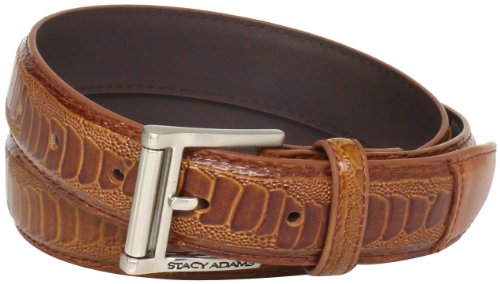 Stacy Adams Men's 32mm Ostrich Leg Embossed Genuine Leather Belt, Cognac, 32