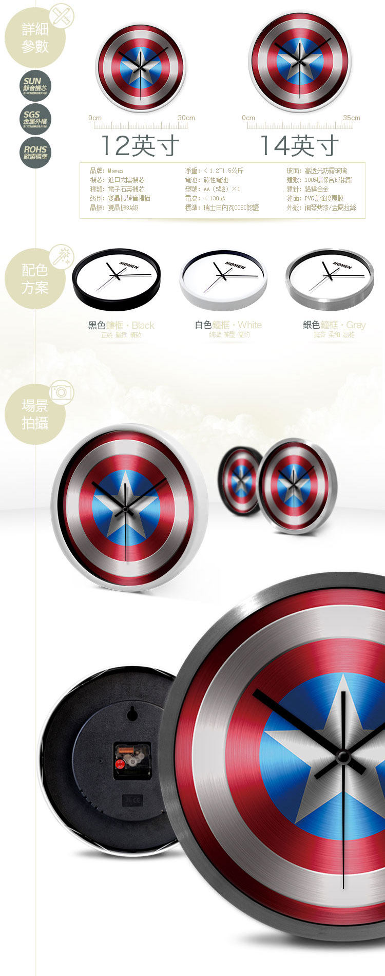This wall has 3 color and size for 12inch and 14inch