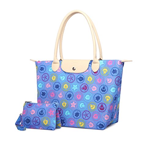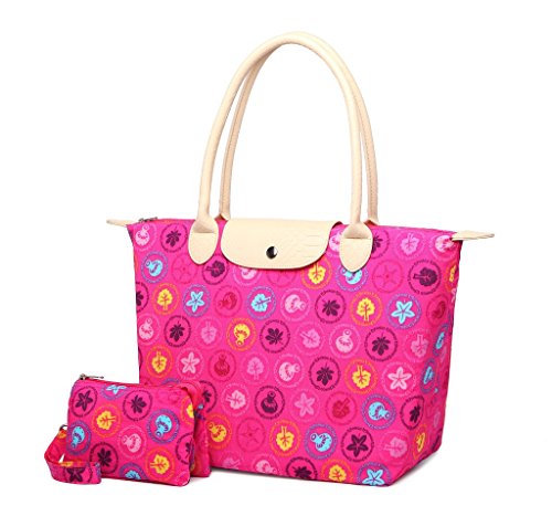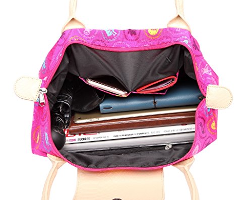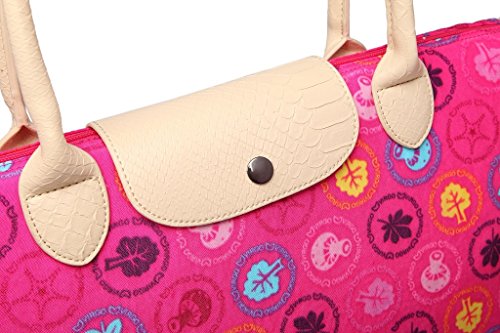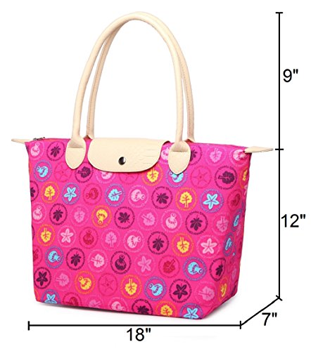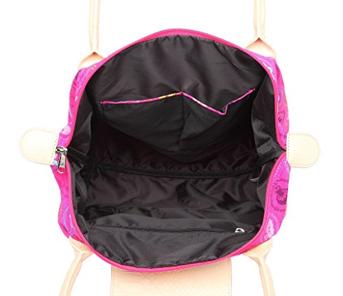 Crest Design Women's Water Repellent Nylon Handbag Tote Shoulder Bag (Large, Pink Wonderland)