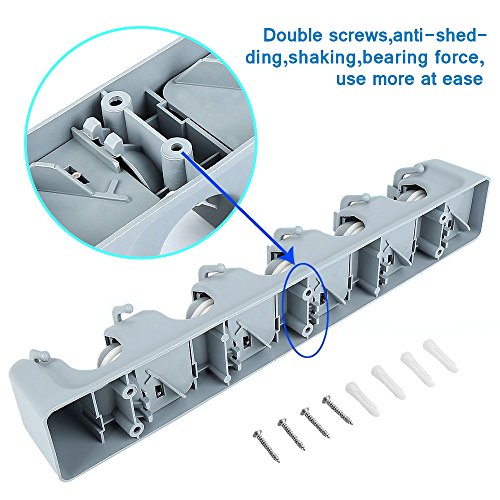 - EASY AND FSAT INSTALLATION: 2 pack broom holder comes with 12 screws and 12 anchors in the package to hold the wall mount organizer.Simply by lifting the handle,the rolling balls automatically adjust to each handle's thickness and grip it securely.So there is no worry that the tools will drop to the floor