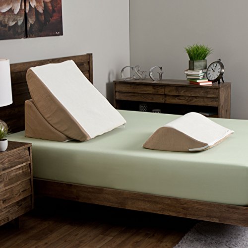 Product Description Relieve neck or back pain with this Comfort Dreams three-piece wedge system. Designed with durable memory foam, this system provides the feeling of floating in zero gravity to relieve muscle tension. This wedge system includes a two-piece curved back wedge and one leg support wedge that is adjustable to fit a range of body sizes. Curved back wedge Adjustable to support legs Removable covers for easy cleaning Wipe surface spills with a mild, non-toxic cleaner Dimensions: Wedge base: 24 inches wide x 18 inches long x 9 inches high Back support: 24 inches wide x 28 inches long x 6 inches high Leg support: 24 inches wide x 18 inches long x 6 inches high Memory Foam Do's and Don'ts: To maximize memory foam expansion; remove from packaging within 72 hours of receipt. This product arrives very tightly packed. Please unwrap and allow 48 hours for this product to return to its original shape. Being sealed in plastic packaging sometimes traps odors. A few hours of airing usually removes the odor. Due to machine cutting manufacturing processes, there may be slight variances in the dimensions of this product. 0