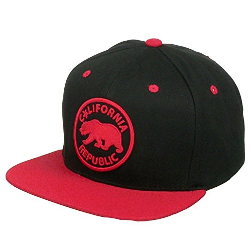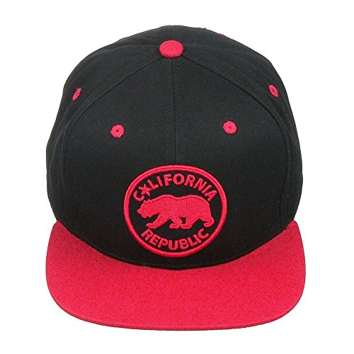 Product DescriptionCalifornia Republic Bear Logo Flat Brim Adjustable Snapback Hat Cap - Black/Red0