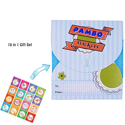 -. Title : PAMBO Monthly Baby Stickers 16Pcs | Waterproof Milestone Newborn Stickers for Boys & Girls | Ideal For Scrapbooking, Important Events & Celebrations, Photo Keepsake, Craft Projects & Baby Shower
