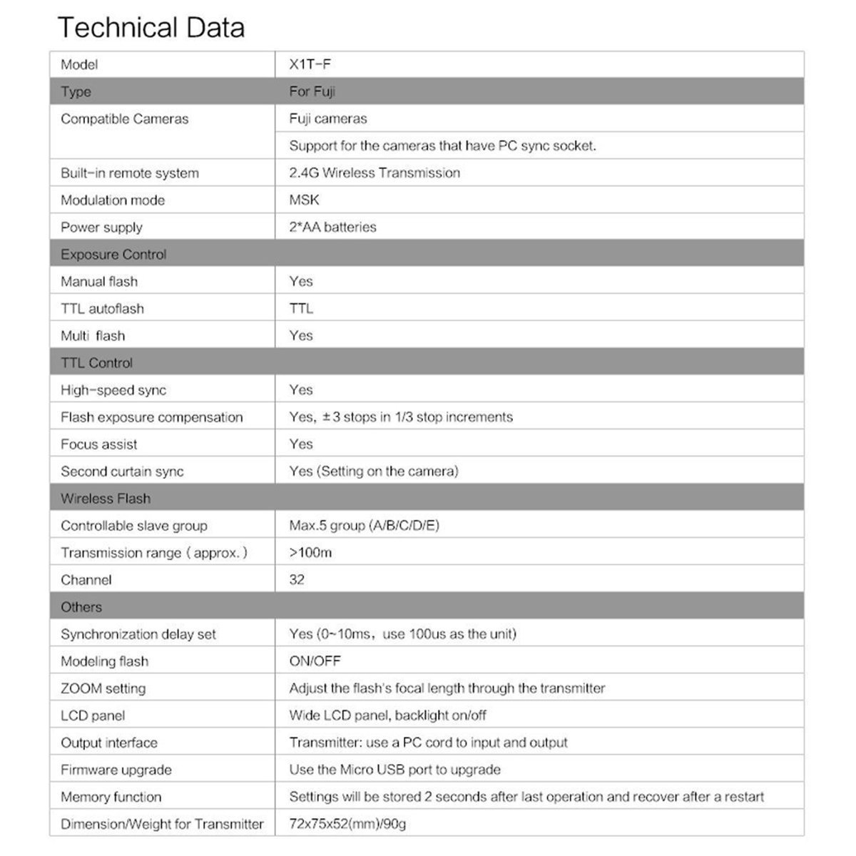 Only X1T-F transmitter is included.