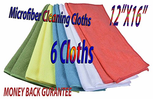 Microfiber Cleaning Cloths for house, Kitchen and Car- 6 different colors-20% less than top competitor , Size 16x12 inch (6)
