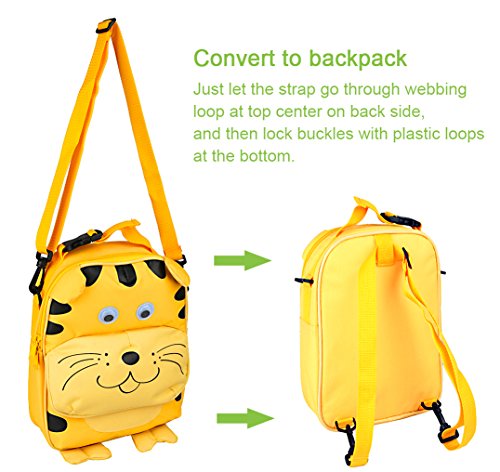 Yodo 3-Way Convertible Playful Insulated Kids Lunch Boxes Carry Bag / Preschool Toddler Backpack for Boys Girls, with Quick Access front Pouch for Snacks, Tiger