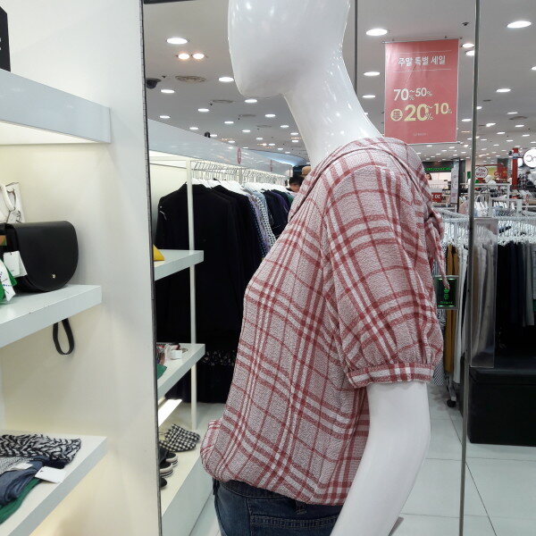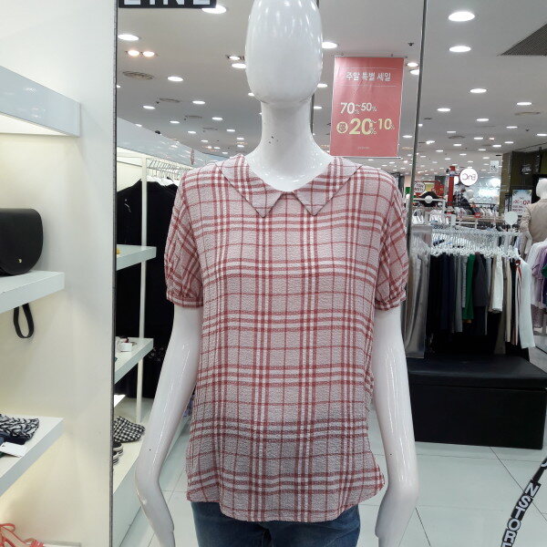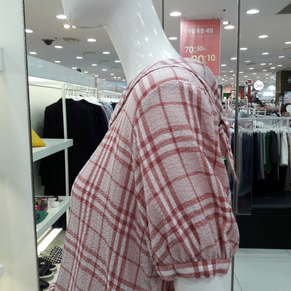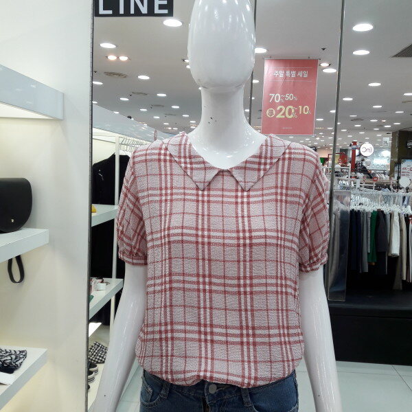 18년 신상 귀엽고 여성스러운 체크 블라우스입니다 전체적인 체크패턴이 화사해 보이며 둥근 카라 넥선과 뒷반전으로 리본 포인트가 사랑스러운 스타일입니다 슬랙스 스커트와 연출해보세요
