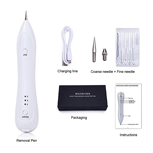 Replaceable Needles Professional mole removal device: It comes with 5 fine needles and 1 coarse needle. perfect for tattoo spot freckle fleshy nevus pigment.