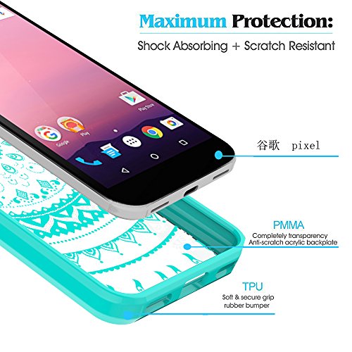 Google Pixel Case Clear 2016, AnoKe [Scratch Resistant] Mandala Flower Cute Girls Women Ultra Thin Slim Fit Acrylic Clear Hard Cover TPU Bumper Phone Case For Google Pixel TM CH Mint
